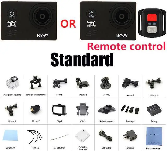 Product features Specifications: Liquid Crystal Display (LCD) 2.0-inch Lens HD wide-angle lens Languages English, Korean, , Polish,Nederlandse,Thai,French, German, Italian, Spanish,Portuguese, Japanese, Simplified Chinese, Traditional Chinese Resolution of Videos Recorded 4K30FPS