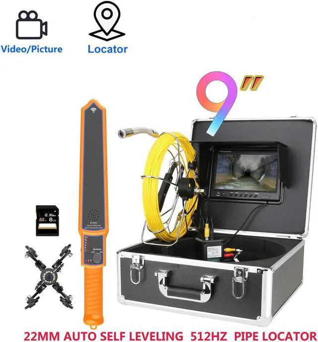 7" Monitor DVR Sewer Pipe Inspection Video Camera with 512HZ Pipe Locator 22MM IP68 HD 1000TVL Camera 12PCS LED Lights