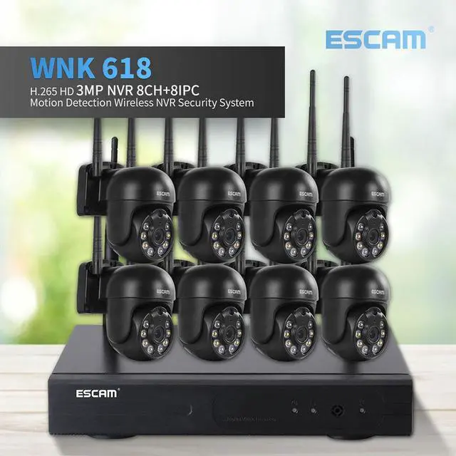 ESCAM WNK618 wireless security camera system kit,8ch NVR + 8pcs Indoor wireless 3MP Camera, dual light source 2-way audio,IR motion detection, alarm push Night Vision Remote,Surveillance Camera system