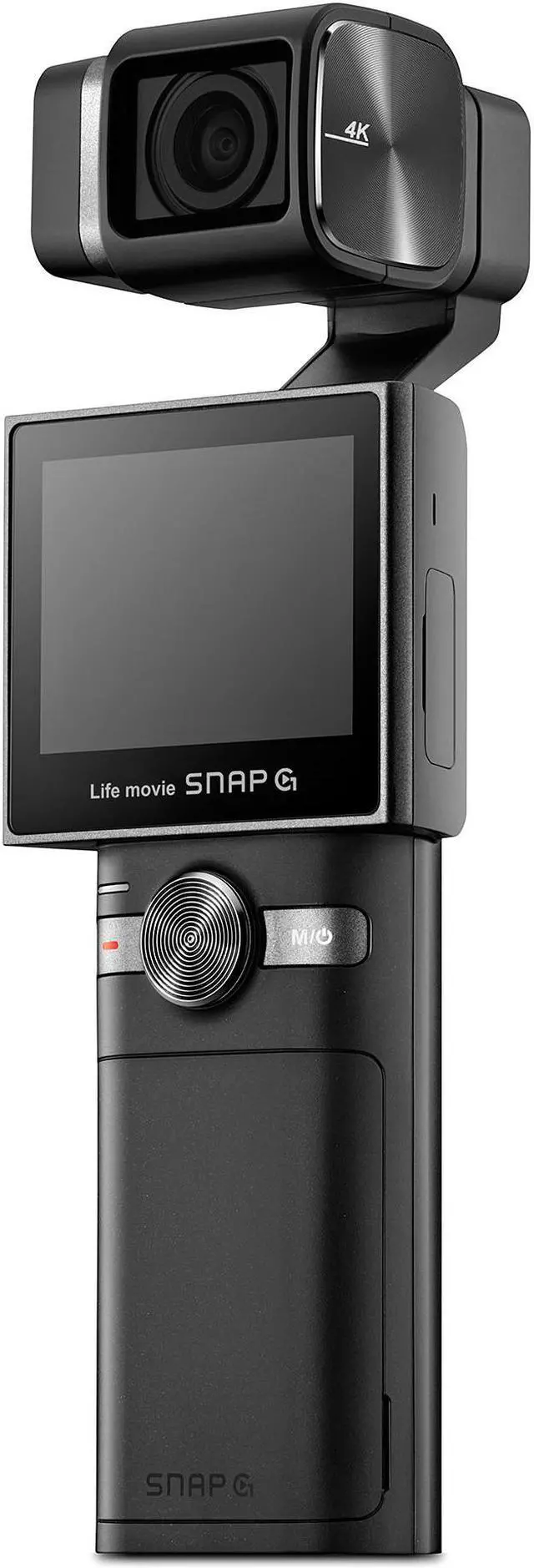 Introducing SNAP-G, a smart 3-axis Gimbal Camera that is equipped to stabilize movement and shoot detailed and immaculate videos in 4K. Capture moments smartly while shooting for longer durations and share easily with your followers and loved ones. Featuring a replaceable battery, 2-inch LCD screen, built-in joystick, trigger, and WiFi, SNAP-G is all you need to record every event in life like a pro.