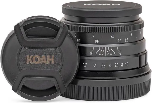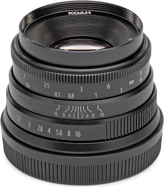 The Koah Artisans Series 35mm f/1.7 Large Aperture Manual Focus Lens features a 42-degree angle of view and minimum focusing range of 11.02 feet. It offers a large f/1.7 aperture with 10-blade diaphragm design. This lens is compatible with Fujifilm FX mount cameras and accepts 43mm filters.