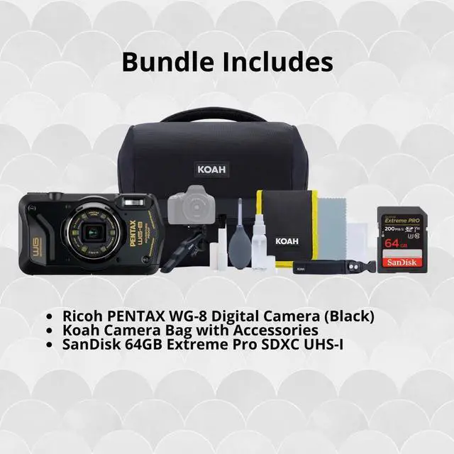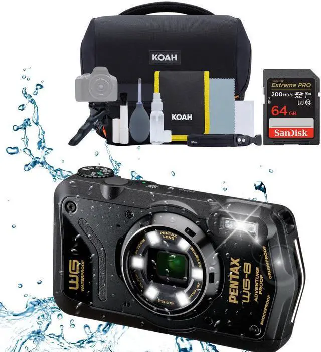 Pentax WG-8 All-Weather Camera with Heavy-Duty Construction and 5x Optical Zoom Lens (Black)