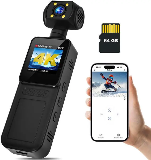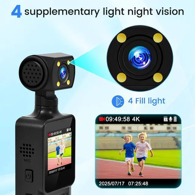 4K & Night VisionOur Wearable Pocket Camera captures crystal-clear 4K video day or night with advanced low-light technology. With 4 supplementary lighting lamps, perfect for security, outdoor adventures, or evidence collection.