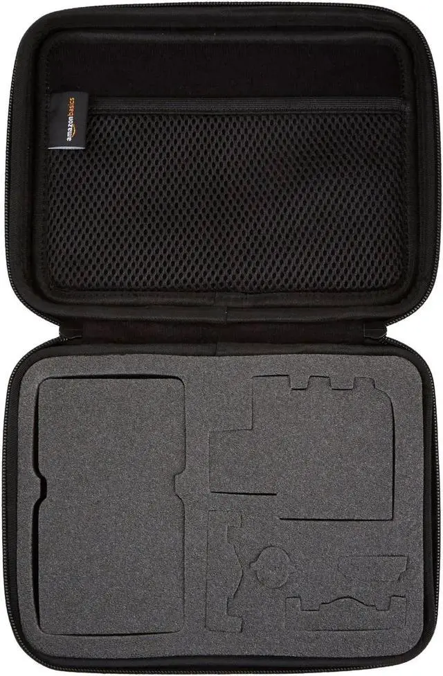 Small case for a GoPro camera and accessories; compatible with all GoPro cameras including GoPro HERO5 Black, HERO5 Session, HERO4 Black, HERO4 Silver, and HERO Session.