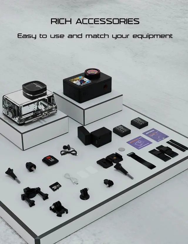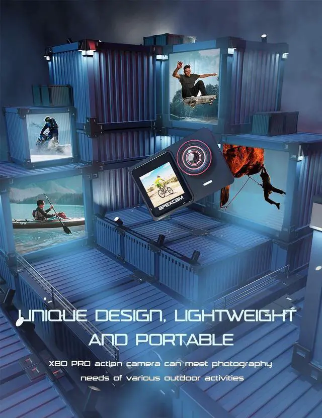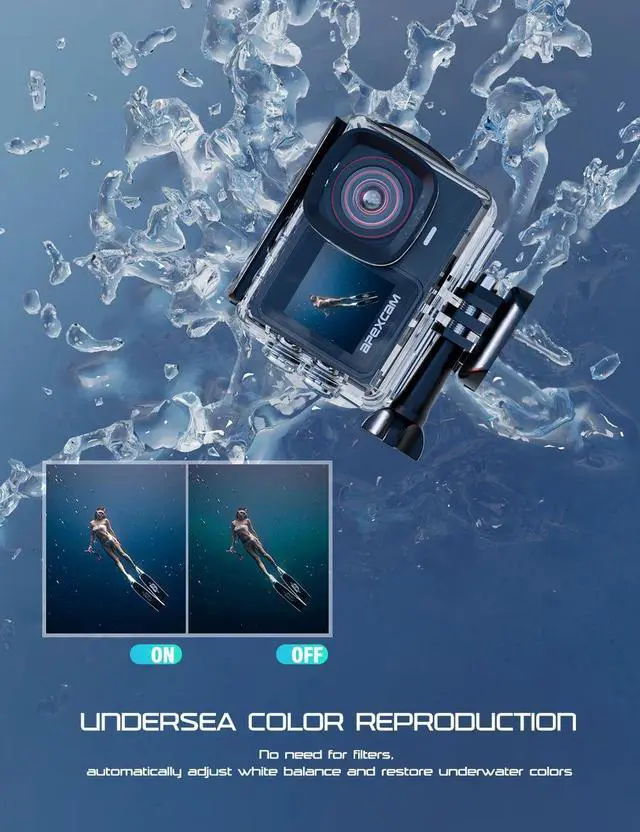 Apexcam Action Camera 4K/60FPS with 64GB SD Card,131FT Water