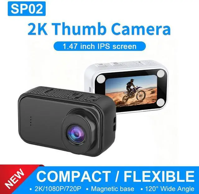 Capture every moment with the SP02 2K Thumb Camera. Featuring 2K ultra HD video, magnetic portable design, 1.47" IPS screen, and 120° wide-angle lens, it's perfect for motorcycle riding, vlogging, skiing, and outdoor adventures.