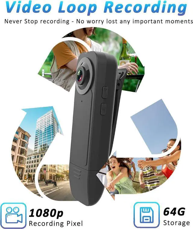 Lightweight & Compact Design - Weighing just 0.19oz and measuring 0.6 x 1 x 3.5 inches, this ultra-portable body camera is easy to carry everywhere. Its long back clip allows for seamless attachment to your pocket, bag, backpack, or clothing, making it versatile for use in business meetings, travel, sports, and even as a dash cam.