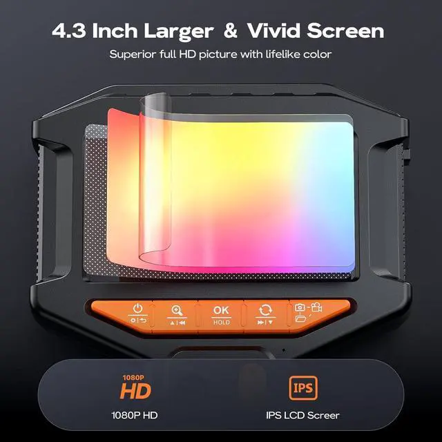 1080P HD Image QualityEquipped with a 1920x1080P HD camera and a 4.3-inch IPS screen, this industrial endoscope delivers clear images with true color accuracy. Even in dark or confined areas, every detail is clearly visible for more precise and efficient inspections