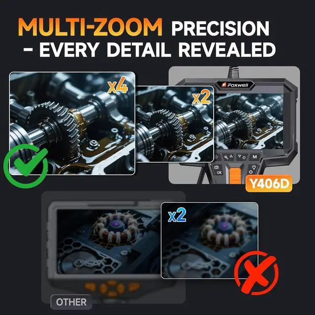 Trusted by Professionals Built by FOXWELLJoin mechanics, HVAC techs, and engineers worldwide who rely on FOXWELL borescope tools with over a decade of diagnostic expertise. No gimmicksjust professional-grade access, clarity, control, and durability in one precision articulating borescope camera with light. This is the bore scope for engine and industrial inspections that works as hard as you do.