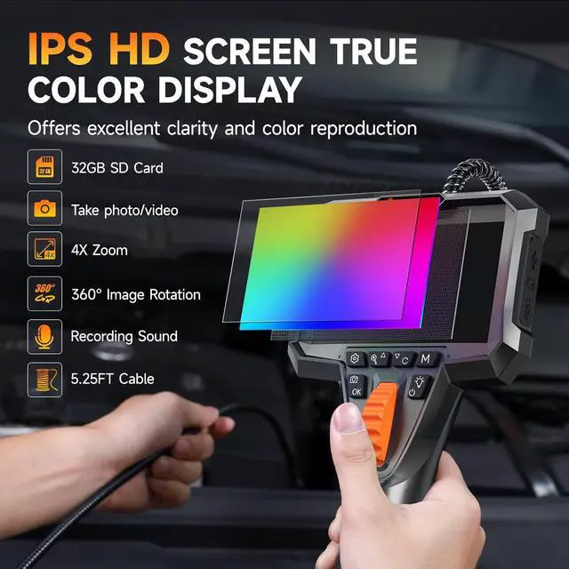 See Everything in HD Even in Total DarknessDark, oily, dusty environments won't hide problems anymore. The borescope camera's HD CMOS sensor and True-Color IPS screen deliver crisp, bright visuals anywhere. Six adjustable LEDs cut through shadows and glare, so you catch micro-cracks, corrosion, and carbon buildup before they become costly repairs. Finallyclarity you can trust with this borescope camera with light.