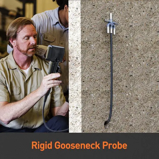 Waterproof Rigid Gooseneck ProbeThe newest articulation videoscope is IP67 waterproof and oil resistant allows for wet plumbing/oil applications. The metal gooseneck cord has a well-designed balance which is malleable enough and hold it's shape, can be easily snaked into whatever space you want to view.