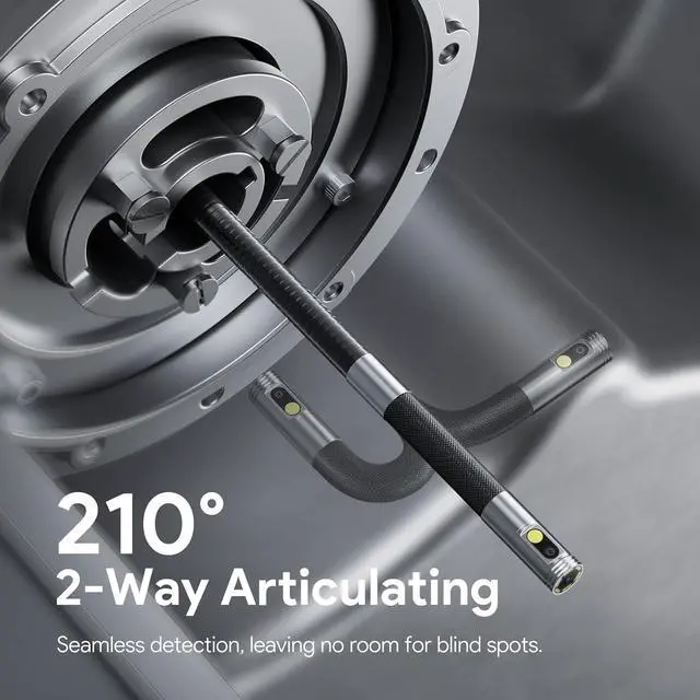 Effortless Tight-Space NavigationTired of inaccessible areas complicating your inspections? The DS650 articulating borescope with dual lens 210° bidirectional articulation glides through confined areas with precision. Dual 78° FOV lenses with split-screen provide expansive visibility, while the side-mounted control wheel ensures smooth one-handed operation. Engineered for complex, hard-to-reach inspections