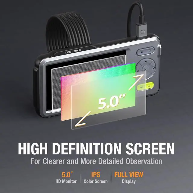 Crystal Clear 1080P HD Imagery: Enjoy stunning clarity with 1080P HD resolution on the large 5-inch screen. Every detail, whether you're examining an engine or inspecting HVAC ducts, is displayed sharply, helping you spot even the smallest issues before they become major problems.