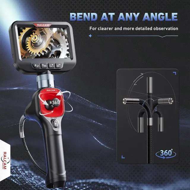 4-Way 180° Articulation for Hard-to-Reach AreasRalcam articulating borescope delivers 180° articulation in 4 directions, letting you effortlessly navigate tight spaces like engine blocks, pipe bends, and HVAC ducts