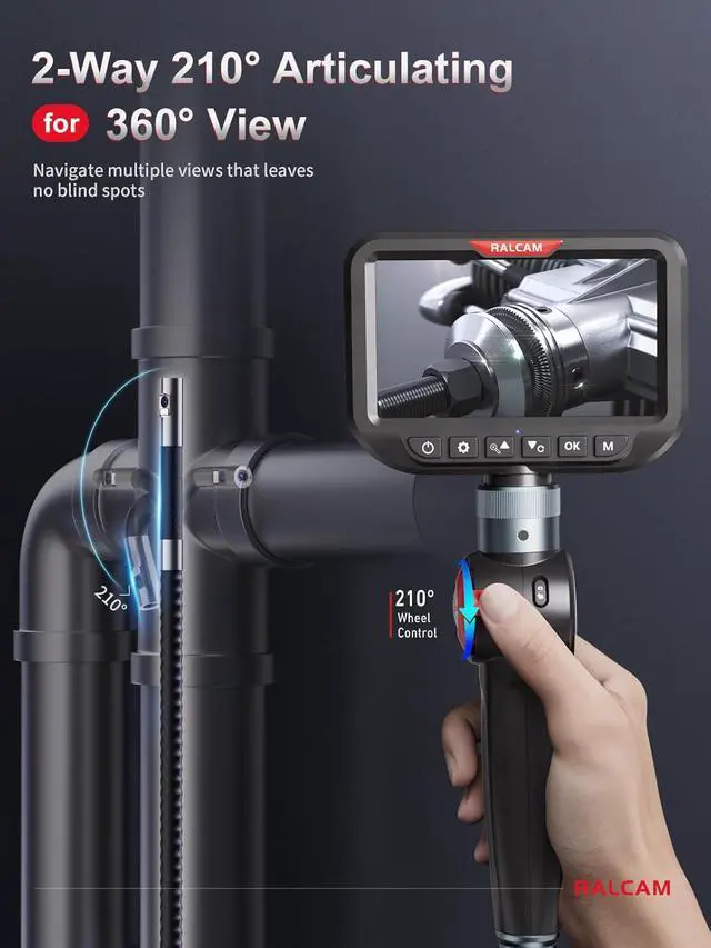 Dual Lens Articulating BorescopeInspect front and side angles simultaneouslyno need to retract or twist the probe. Capture blind spots in engines, pipes, or machinery without repositioning the probesaving at less 50% inspection time