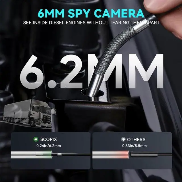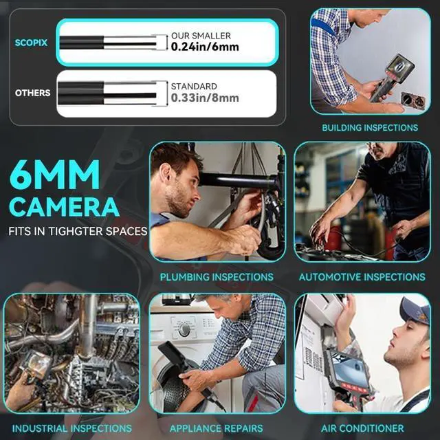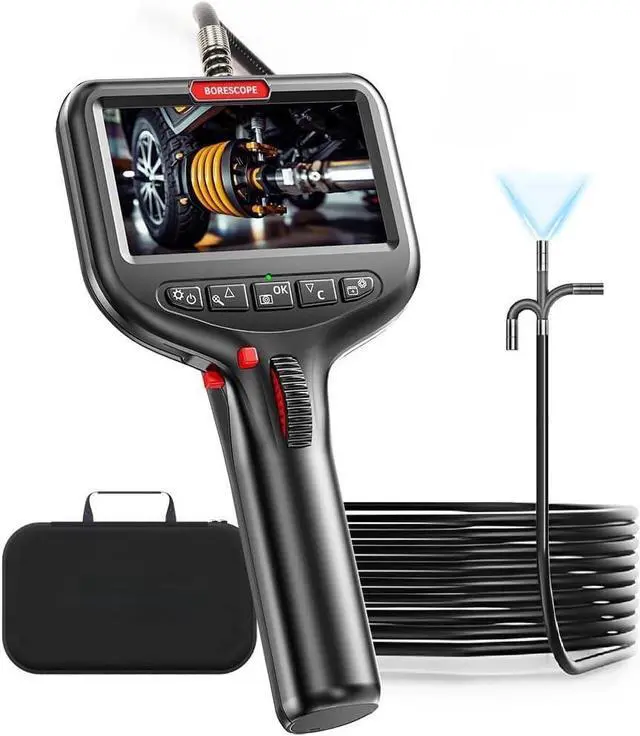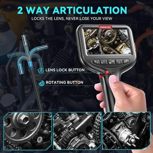 Upgraded Ultra-Thin Flexible Probe Boroscope: Featuring an upgraded 0.24-inch ultra-thin flexible probe and a durable 5-foot metal snake tube, this endoscope camera with light reaches into the tightest spaces. It's the ideal tool for automotive maintenance, appliance repairs, and building inspectionsmeeting all your close-up viewing needs! Capture sharp images in the tightest spaces. Whether for auto repair, appliance maintenance, or building inspections, this inspection camera with light is your go-to tool. Designed for comfort and efficiency, it features a 360° rotating wheel mechanism. You can rotate the probe to any angle as needed, making it incredibly convenient to use