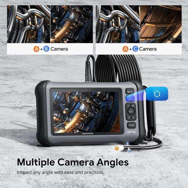 [Professional-Grade Clarity with Triple Lens & Split Screen]: Equipped with three high-definition lenses and a vivid 7-inch IPS display, the DEPSTECH 700SE endoscope delivers multiple viewing angles and split-screen imaging. Easily switch between the main and side lenses without manual adjustmentideal for inspecting pipes, engines, or narrow spaces with total confidence and zero blind spots