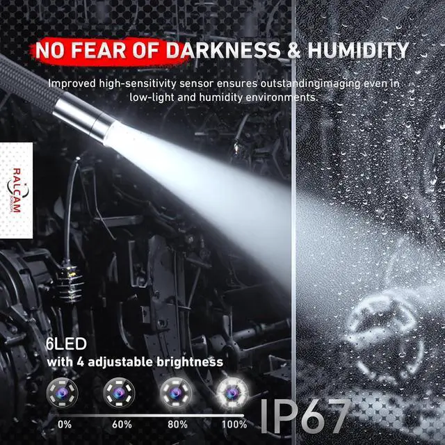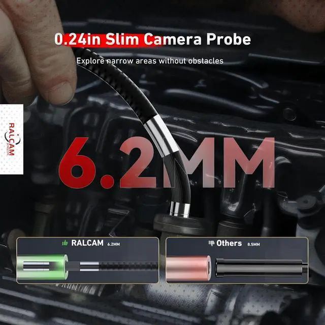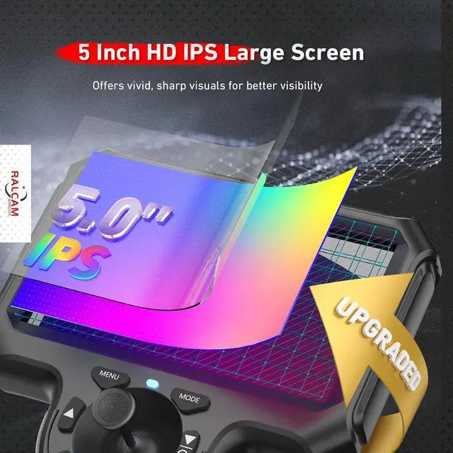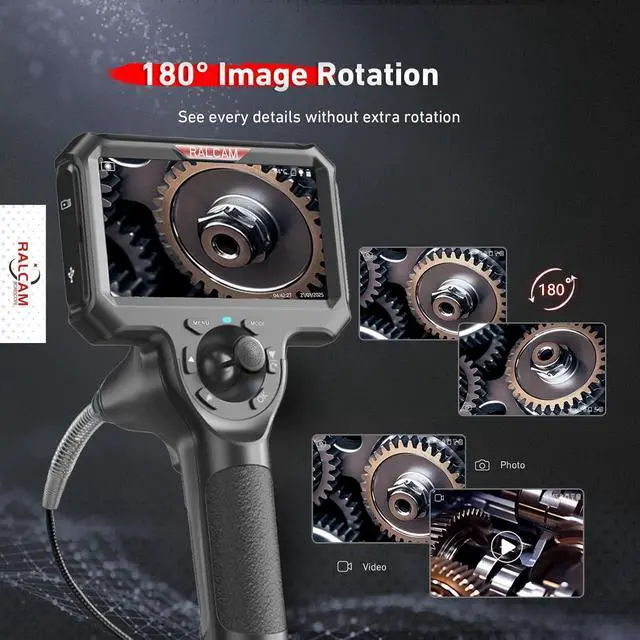 5 Inch Large Screen BorescopeEquipped with a 5-inch high-definition screen, Ralcam industrial borescope delivers bright, sharp visuals for better visibility and detailed inspections. 1080P borescope camera always delivers sharp images and videos with true to life colors