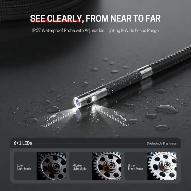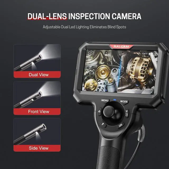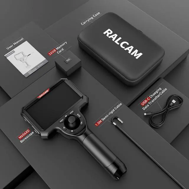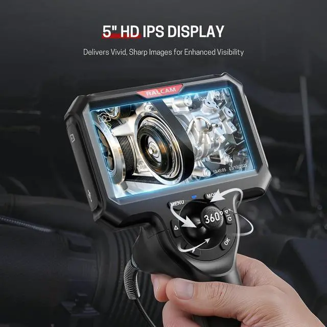 5 Inch Large Screen BorescopeEquipped with a 5-inch high-definition screen, Ralcam industrial borescope delivers bright, sharp visuals for better visibility and detailed inspections. 1080P borescope camera always delivers sharp images and videos with true to life colors