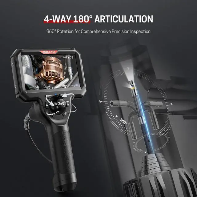4-Way 180° Articulation with Joystick ControlDesigned with joystick controlled, provide 4-way 180° all view steering inspection camera, navigate through tight spaces effortlessly with smooth and accurate maneuverability. Perfect for inspecting complex machinery, pipes, engines, and more