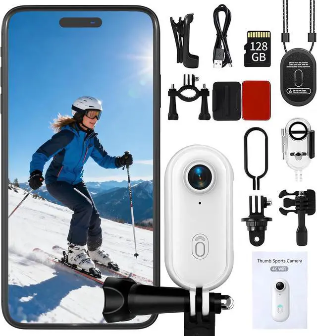 4K Thumb Action Camera | 128G Sports Camera for POV Photoshooting: Waterproof Sports Camera The Size of a Thumb Suitable for Running Cycling Swimming Hiking Adventure Etc (Black) White