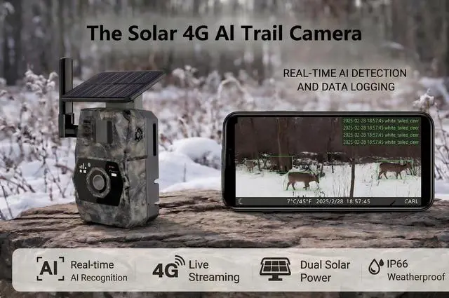 The camera automatically detects and identifies wildlife, helps organize captured image records, and allows users to review activity through the mobile app. With app-based access and smart insights, monitoring becomes more efficient, convenient, and responsive in outdoor environments.