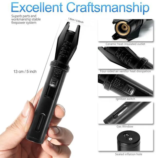 Professional use tips: Please continue to press the ignition button firmly until a stable jet flame is formed. A short press may cause ignition failure. You need to release it quickly after use to avoid the problem of slow extinguishing.