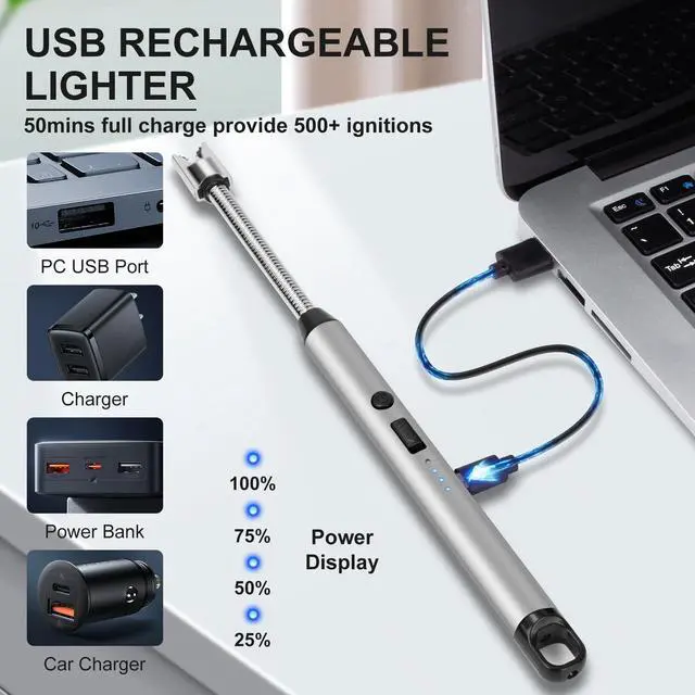 360° neck that can be twisted in any narrow place, the usb lighter is very suitable for kitchen or ourdoor camping use.