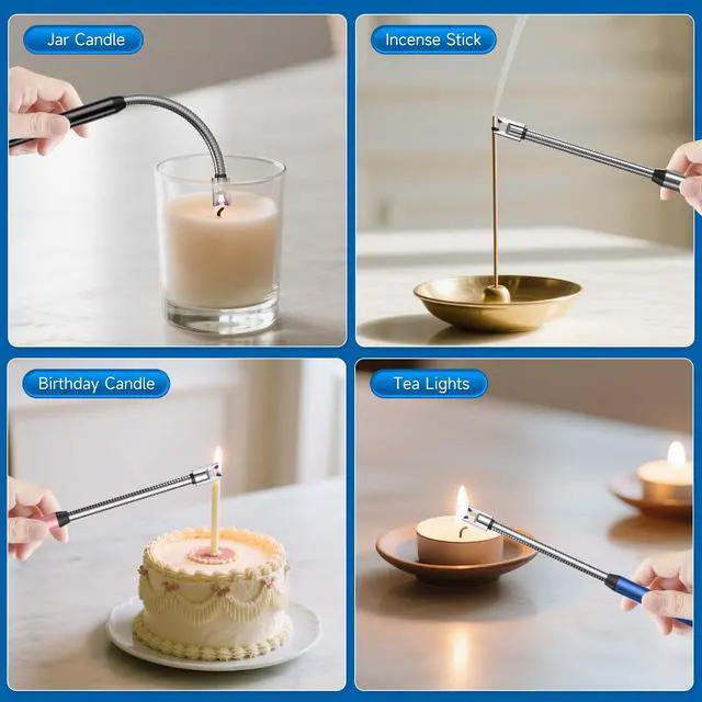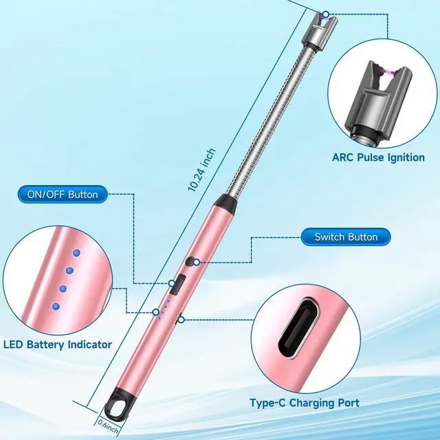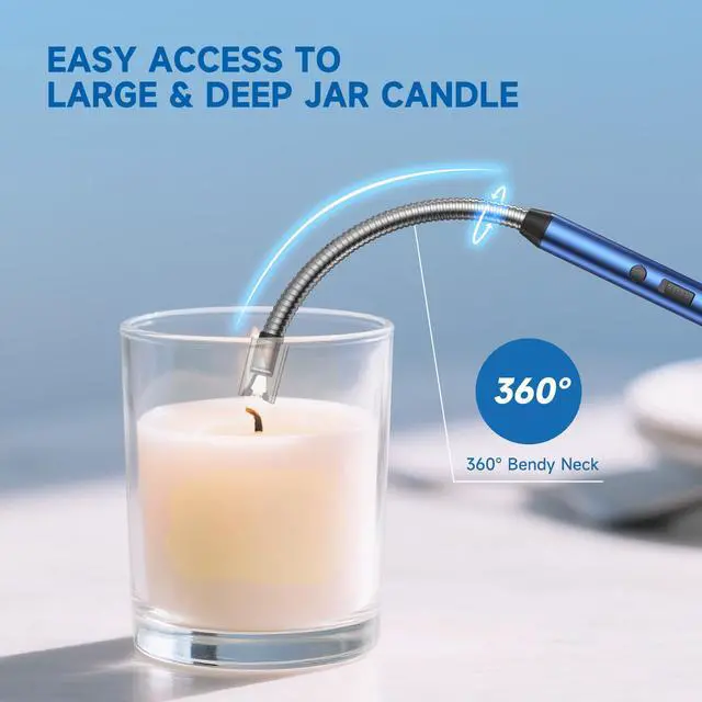 [Easy Charging, Convenient Life] - The electric candle lighter is equipped with a USB charging cable, which is convenient for you to charge anytime and anywhere. There are 4 power indicator lights on the lighter handle. When only one light is on, please charge it in time. Each charge only takes 60 minutes to be fully charged. When fully charged, all 4 LED lights will light up. This rechargeable lighter can be charged over 500 times, so you don't have to worry about long-term use