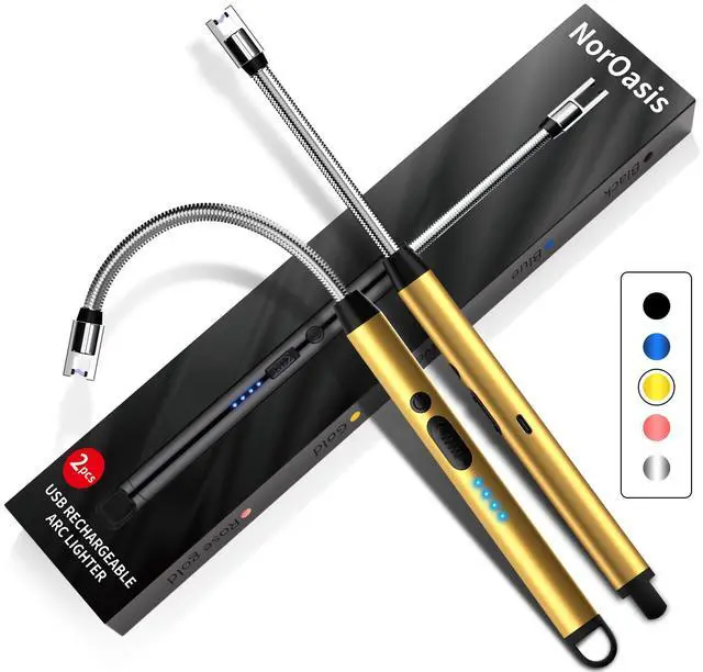 2-Pack Rechargeable Electric Candle Lighters, Flameless Windproof Long Lighter with 360° Flexible Neck and LED Display for Candles, Camping, BBQ & Fireplace (Gold)