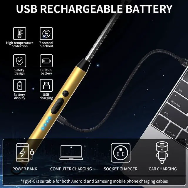 USB Type C RECHARGEABLE - The Lighters can be used 600 times on a single charge . The 4 LED POWER INDICATOR guarantees that you are always aware of the available energy level.