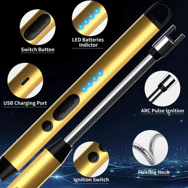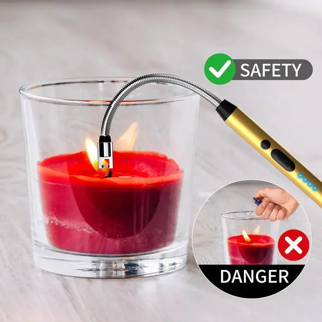 4.0" Long Flexible Neck - The electric candle lighter is 10.2 inches in length with a 4.0 inch long neck. The 360° bendable and retractable neck of the lighter adapts to any challenging ignition angle, such as deep candle holders