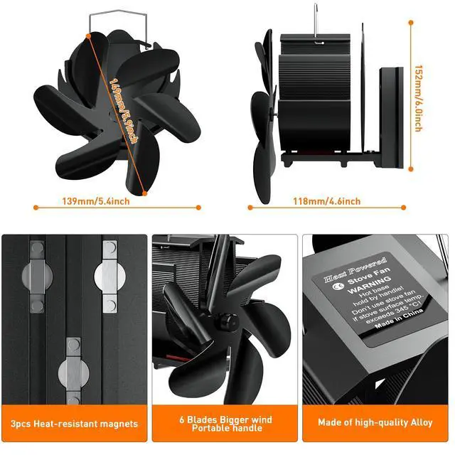 Triple Magnetic Strength: This fan features a magnetic attachment with triple the holding power, ensuring it stays securely in place on all types of cast iron and alloy stove pipes.