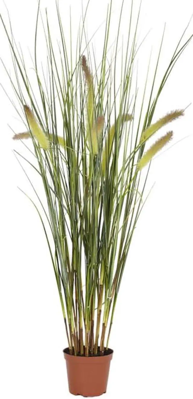 Spring will always remain in the air when it comes to this wispy PVC Grass plant. Standing at 2.5' tall, this delightful sprig of grass will add the right kind of flourish to your kitchen, dining room, or any other area in the house. And unlike real grass, this plant only needs the slightest bit of care (dust it once a month.), and is a perfect accent to any arrangement.