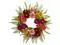 Sunset shades of purples and reds make this wreath the perfect summer or autumnal display. Various shades of green burst from all sides to create a stunning entryway focal point. Handcrafted with attention to detail, each petal and stem have a lifelike appearance.
