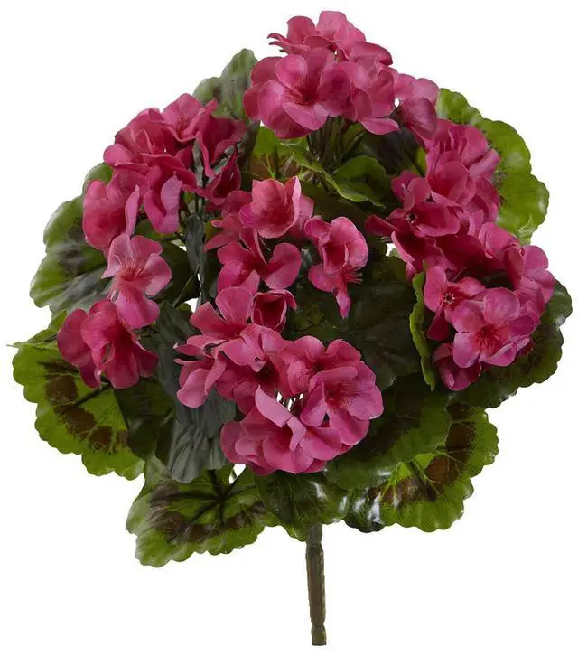 The blooms of the geranium bush are UV-resistant and can be placed on any outside structure to add a pop of color to the arrangement. Or, if you prefer to bring that color indoors, the bush is small enough to act as a decoration for a table or cabinet shelf. Four bushes included.