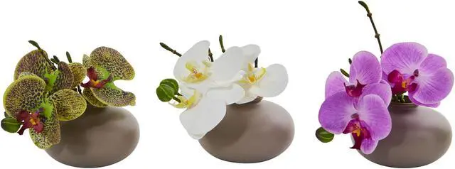 The versatile phalaenopsis orchid is sure to fit in with any home decor. Small enough to sit on any table surface, it comes in a set of three, and will add a pop of color to your living room. Mix and match these artificial orchids and other decor to develop your own unique arrangement.