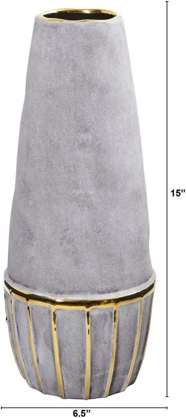 Nearly Natural 15" Regal Stone Decorative Vase with Gold Accents