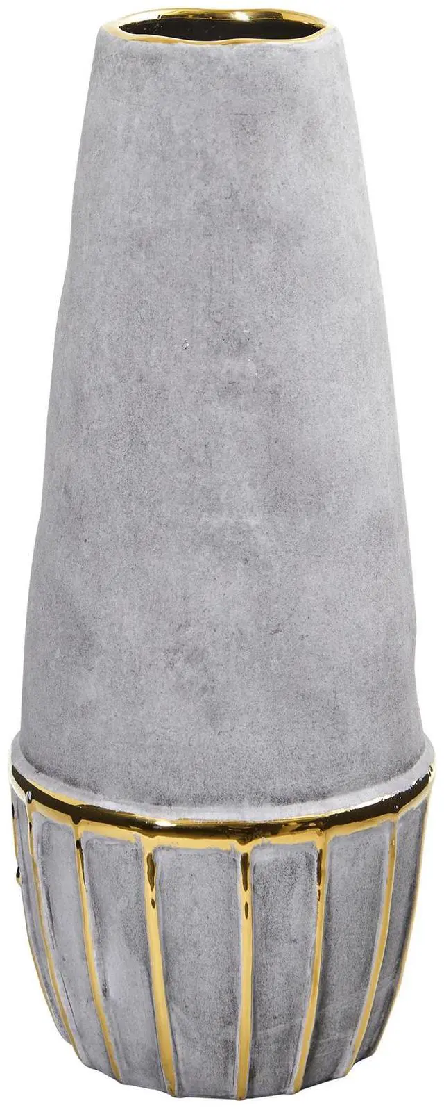 Love your new plant but not the planter? It's your lucky day with this Stoneware Oval Vase with gold trimmings (Set of 1). DIY your own faux-bolous arrangement easily, effortlessly and confidently by adding your own finishing touches. If you're into Hollywood glam or mid-century modern, you'll love this ceramic vase's gold trimmings against the stoneware base. Standing 15" high, you can set in a tabletop against a walled mirror for a chic look. No drainage holes.