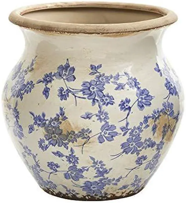 Arrange your fauxbolous flowers in this floral print vase. The vintage ceramic planter has a homey feel with its palette of pinkish flowers against a rugged backdrop. DIY and have fun mix-matching for a country chic look that delivers that fresh farm to home style. No drainage holes and indoor use only.
