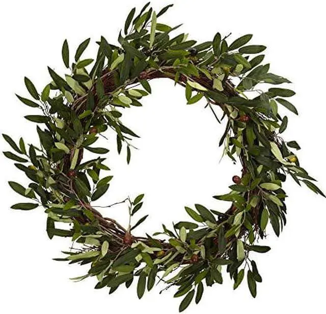 Conjuring up images of old friends and close family, this striking Olive Wreath will help to set the mood for your next dinner event. Filled with beautiful and lush green leaves encompassing a perfect circle, this Olive Wreath will be a big hit as you serve up that favorite Italian or Greek meal, whetting your guests appetites for not only for the food, but the wonderful surroundings. Silk arrangements are manufactured using synthetic materials, such as polyester material or plastic, and are well designed and constructed to be life-like in appearance.