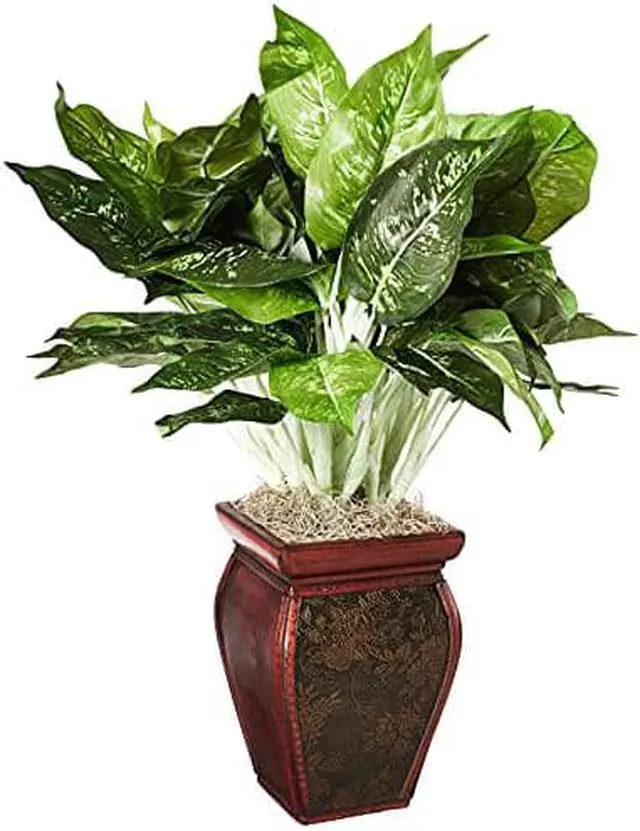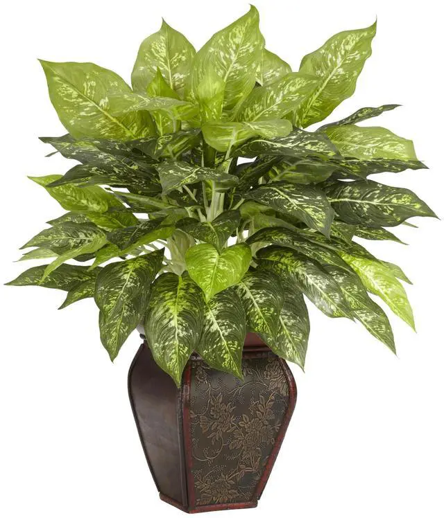 The Dieffenbachia is a favorite addition to any home or office due to its large, stylish leaves, which also sport simple yet beautiful patterns along their rich, green surfaces. With a star-like cascade of foliage bursting out of an elegantly designed textured brown vase, this traditional favorite is sure to add a burst of life to any environment.