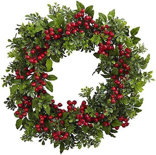 Create a captivating holiday display with a mix of berries and boxwood. Meticulously placed and adorned in holiday red, the finest handcrafted materials add depth and dimension to greet guests at the entryway or as a charming dinner party centerpiece.