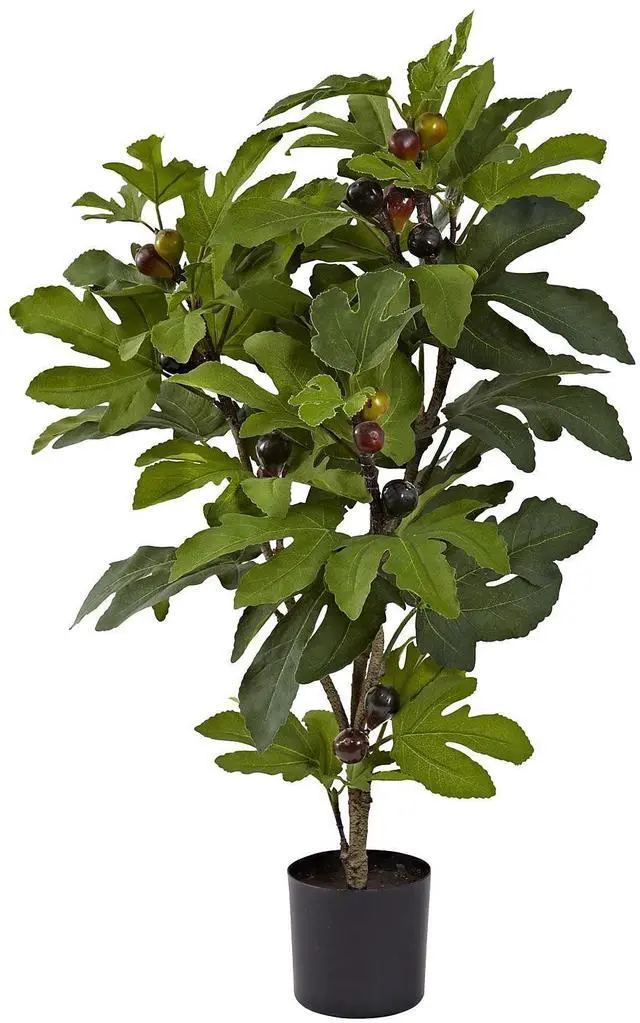 Nearly Natural Fig Tree features 42 large leaves and 15 imitation figs that adds springtime to your home decor no matter what season it is. This tree comes with a pot and does not require watering.