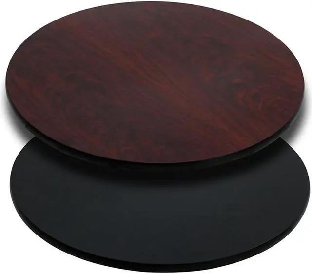 Complete your restaurant, break room or cafeteria with this reversible table top.The reversible laminate top features two different laminate finishes. Choose your color of choice and bolt to the compatible sized base. Surface is heat, scratch and moisture resistant. Use a mild detergent and water, dry clean to keep your tables spotless.This table top is designed for commercial use so you will be assured it will withstand the daily rigors in the hospitality industry.