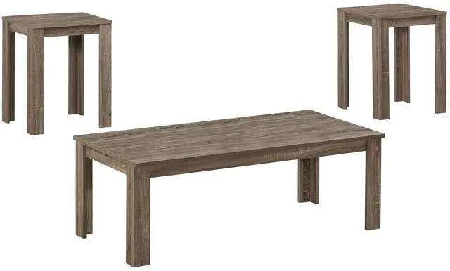 Refresh your living space with this classic rectangular shape occasional table trio. Fabricated in an alluring dark taupe reclaimed, wood-look finish, these cocktail tables makes an exceptional fit for nearly any space. Featuring strong rectangular legs and sleek lines for a classic look with a casual contemporary appeal.