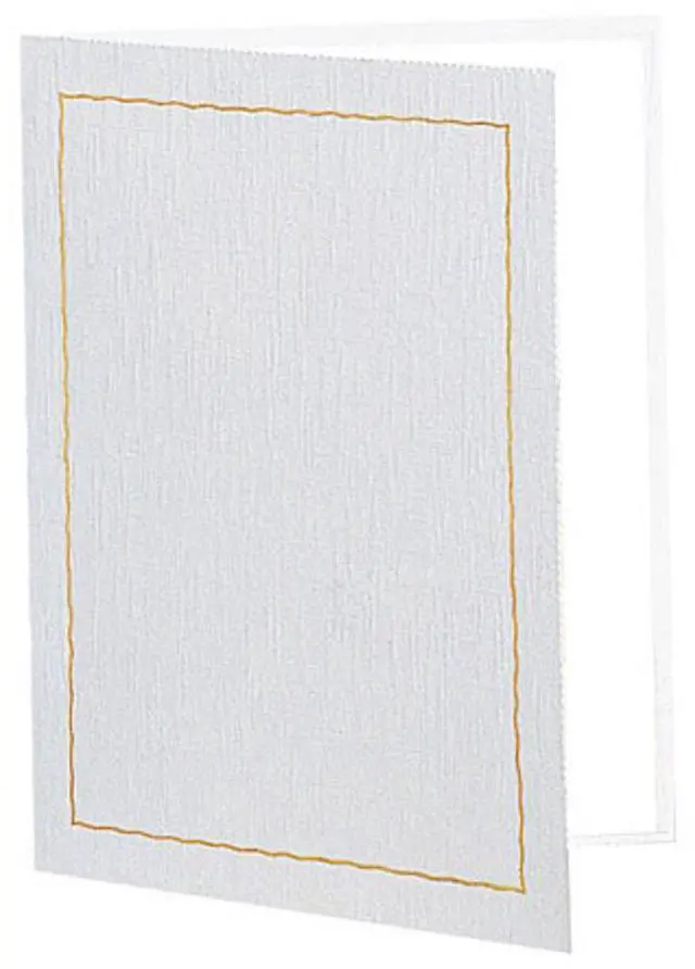 Let your achievements shine with our premium Certificate Folder Frame, specifically designed to fit 8.5 x11" certificates or photos. This pack of 25, elegantly crafted in a classic ivory color, is accentuated with a touch of gold foil for an added dash of sophistication. Each frame features an acetate insert, providing a full view of your certificate or cherished photo, ensuring your accomplishments or memories are displayed in their entirety. Ideal for both professional and personal use, these frames are perfect for showcasing diplomas, awards, certificates, or memorable photos.