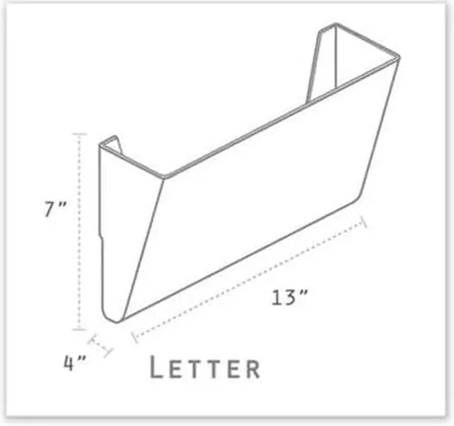 Limited on desk space? Maximize your home or office storage. Built with your convenience in mind, the wall pocket includes three types of mounting brackets so your files will always be within reach. The back wall ensures that no paper, big or small, will slip between the cracks. PVC-free. BPA-free. Hanging File Systems Type: Wall; For File Size: Letter; Overall Height: 7"; Width: 13".