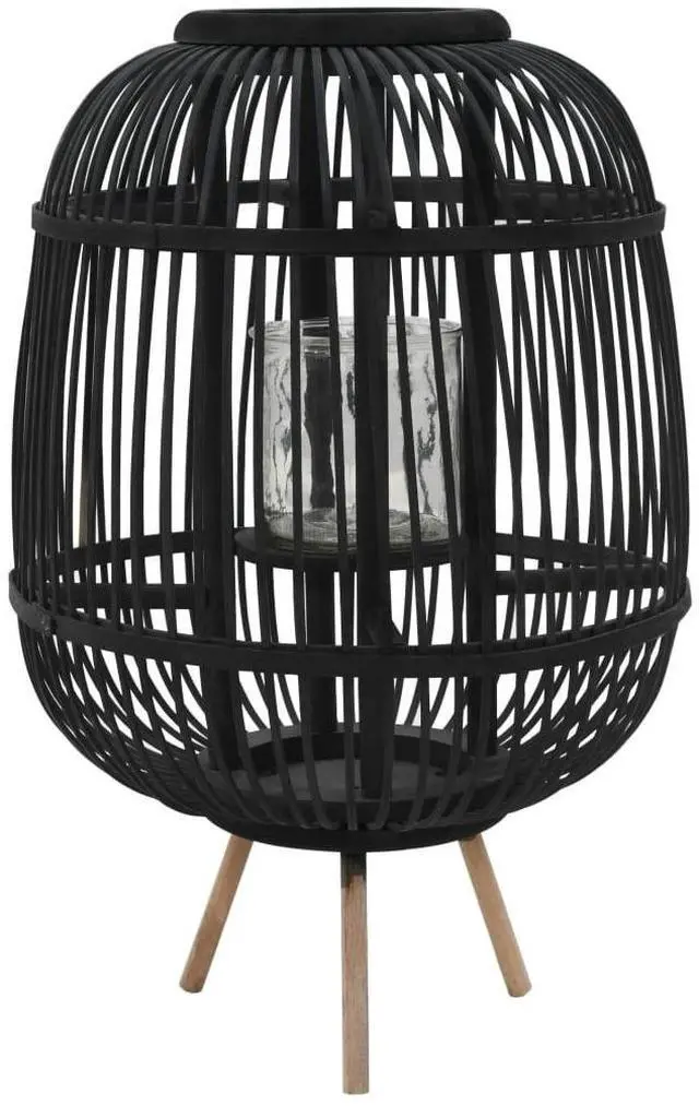 Made of naturally strong bamboo, this candle lantern is suitable for outdoor use. The inside glass jar provides a safe and stable shelter for the candle. The wooden feet at the bottom provide a stable base for the candle lantern holder.