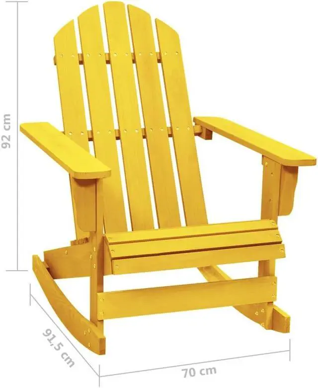 This Adirondack rocking chair is a lovely mix of comfort and style, made just for outdoor use. Its bright yellow finish and solid fir wood build bring a classy touch to any yard or patio, perfect for relaxing and enjoying the sun.